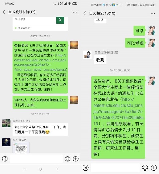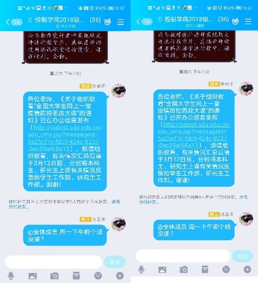 3月9日下午,一堂让千万大学生同时在线观看的“现象级”网络思想政治课在“网络端”拉开大幕。beat365英国官方网站在开播前,学院吴晓晴副书记根据各个年级疫情期间的授课情况,号召全体同学共同参与课程,充分利用网络进行学习收看,针对部分班级课程时间冲突的情况,班级通过回看教学视频的方式进行学习,同时在各团支部及党支部中展开讨论,由各级辅导员带领同学进行讨论,引领大学生传承和弘扬爱国精神,深刻认识中国共产党领导和中国特色社会主义制度的显著优势,鉴定“四个自信”。