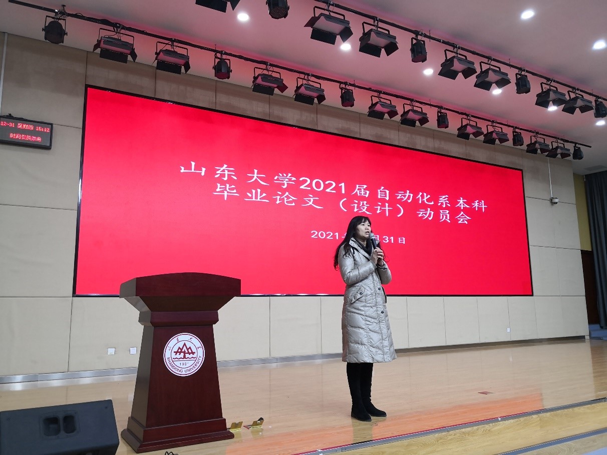 2020年12月31日,beat365英国官方网站自动化系在兴隆山校区讲学堂101举办了2021届本科毕业论文(设计)动员会。本次动员会由自动化系副主任刘国良主持,自动化系主任吴皓、副主任陈桂友和辅导员范崇峰分别致辞,教师代表杨西侠、李晓磊和宋然参加了本次会议,2021届自动化专业全体同学参加了本次会议。