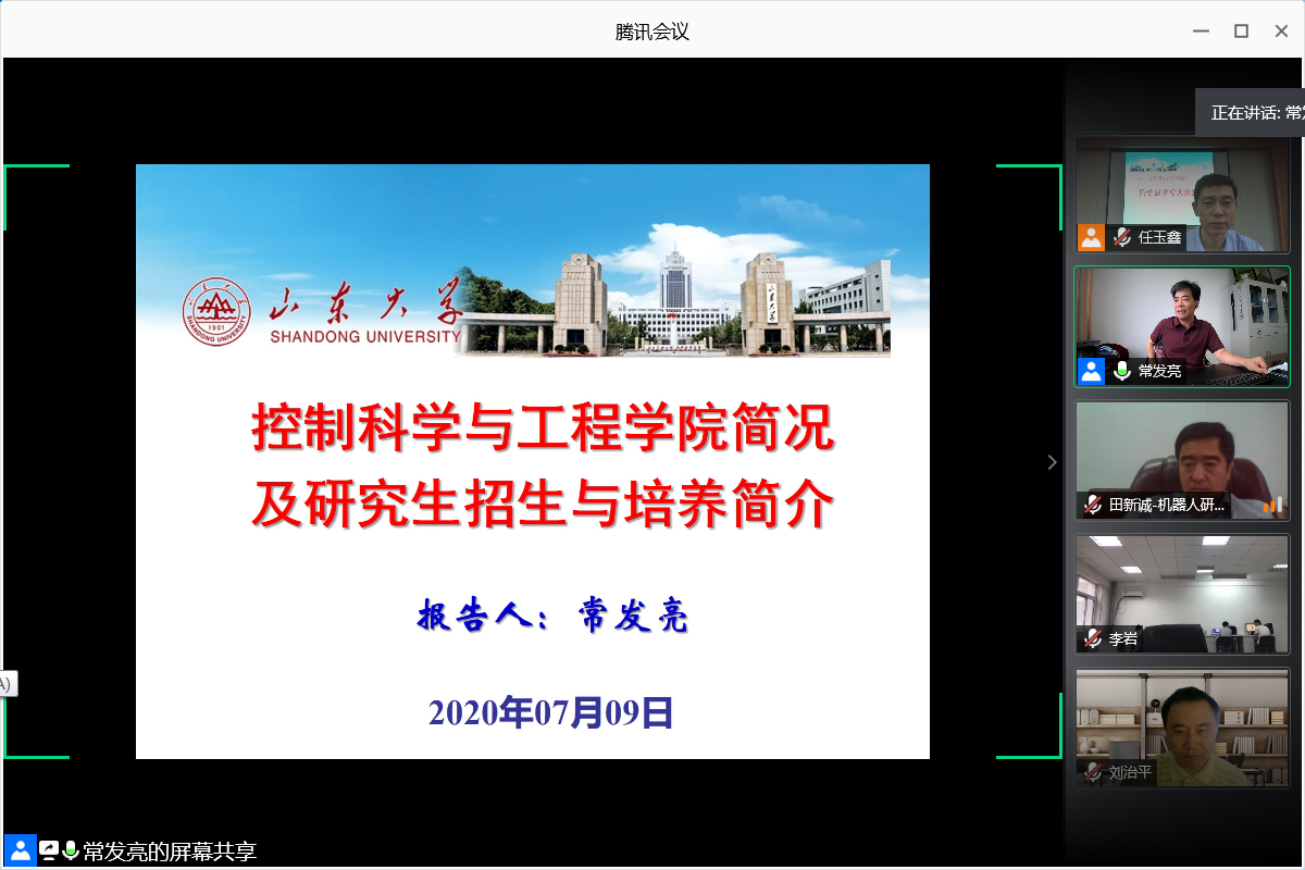 9日上午,夏令营开营仪式通过腾讯会议网上进行。开营仪式由研究生教务老师任玉鑫主持,教育部长江学者、beat365英国官方网站院长张承慧教授致开幕词,张院长通过详实的数字介绍了beat365在人才引育、学科推进、平台建设中取得的巨大成绩,代表学院热忱欢迎全国各地的优秀学子报考山大控院。副院长常发亮介绍了beat365发展历史、学科队伍和平台建设、科学研究、研究生培养,以及2021年硕士研究生招生政策。随后,自动化所、新能源与高效节能国家地方联合工程实验中心暨电力电子节能技术及装备教育部工程研究中心、智能装备与电子新技术研究所、生物医学工程研究所、智能无人装备教育部工程研究中心暨机器人研究中心相关负责人简要介绍了本中心(所)的科学研究和研究生培养的相关情况。