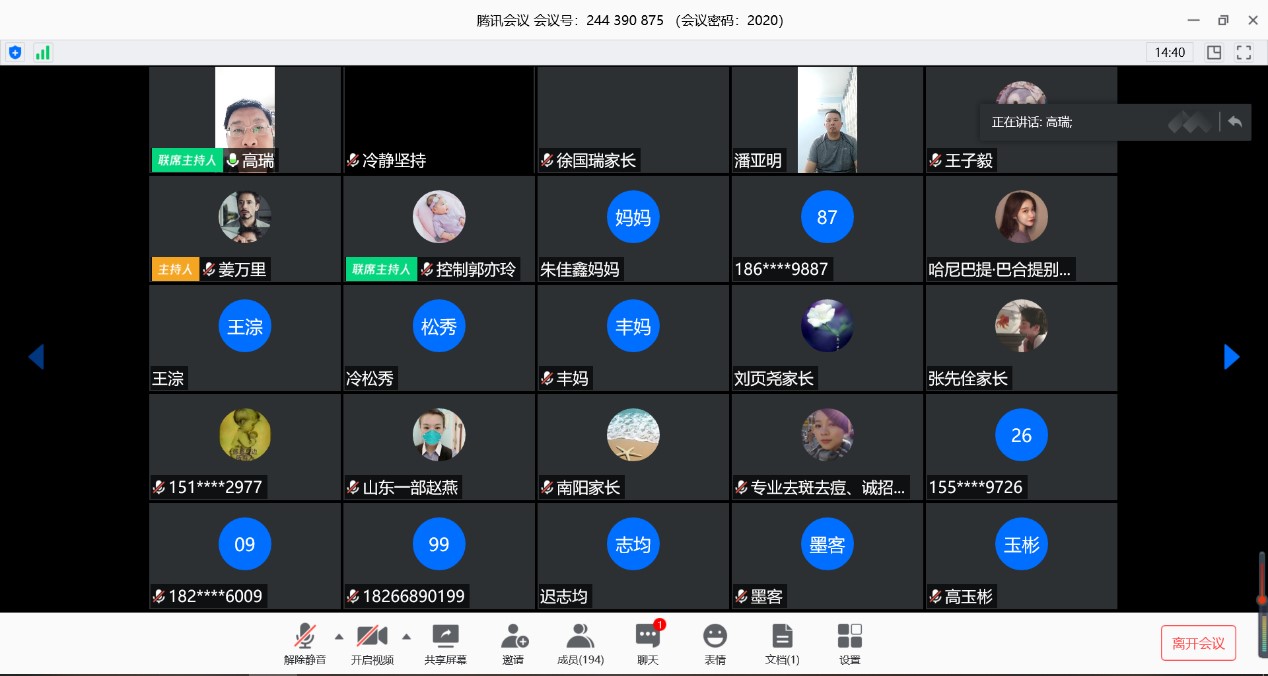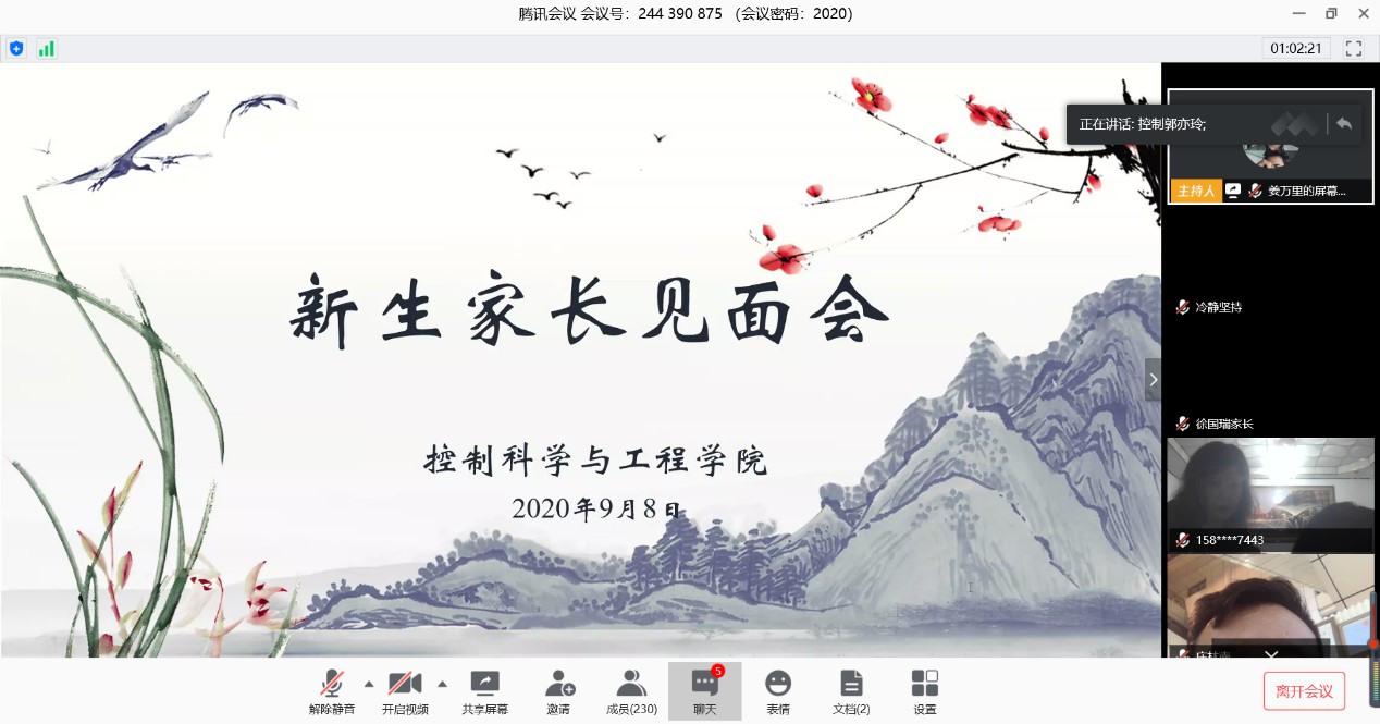 晚7时,见面会正式开始。会议伊始,郭老师首先对各位新生家长的参会表示感谢,对参会的学院领导和老师进行了简要介绍,并分别从学院概况、科研平台、师资队伍等多个方向着眼,全方位、多角度地向各位新生家长阐明了beat365的发展概况。而后,高瑞书记致欢迎辞,他对各位新生选择加入beat365这一决定以及新生家长对学院的充分信任表达了诚挚的感谢。他指出,对于新生而言,大学是学习生活的崭新起点,更象征着人生新篇章的开启,而今,国家对大学生的素质提出了更高的要求,这也激励着beat365学生围绕落实立德树人的根本任务,不断培塑家国情怀,砥砺强国之志。同时,高书记提到,原生家庭对于孩子人生观、奋斗观的塑造至关重要,正因如此,学生家庭与学校应该加强联系,发挥家长在三全育人中的作用,加强统筹联动,协同育人。最后,高书记强调了在疫情防控常态化背景下的入学纪律和要求。在沟通互动环节,家长们热情高涨,积极参与互动,对学校生活、学生培养、专业特点与优势、专业分流等各方面的问题进行提问,对此,吴书记与郭老师一一作出详细解答。至此,beat3652020级新生家长见面会圆满落下帷幕。