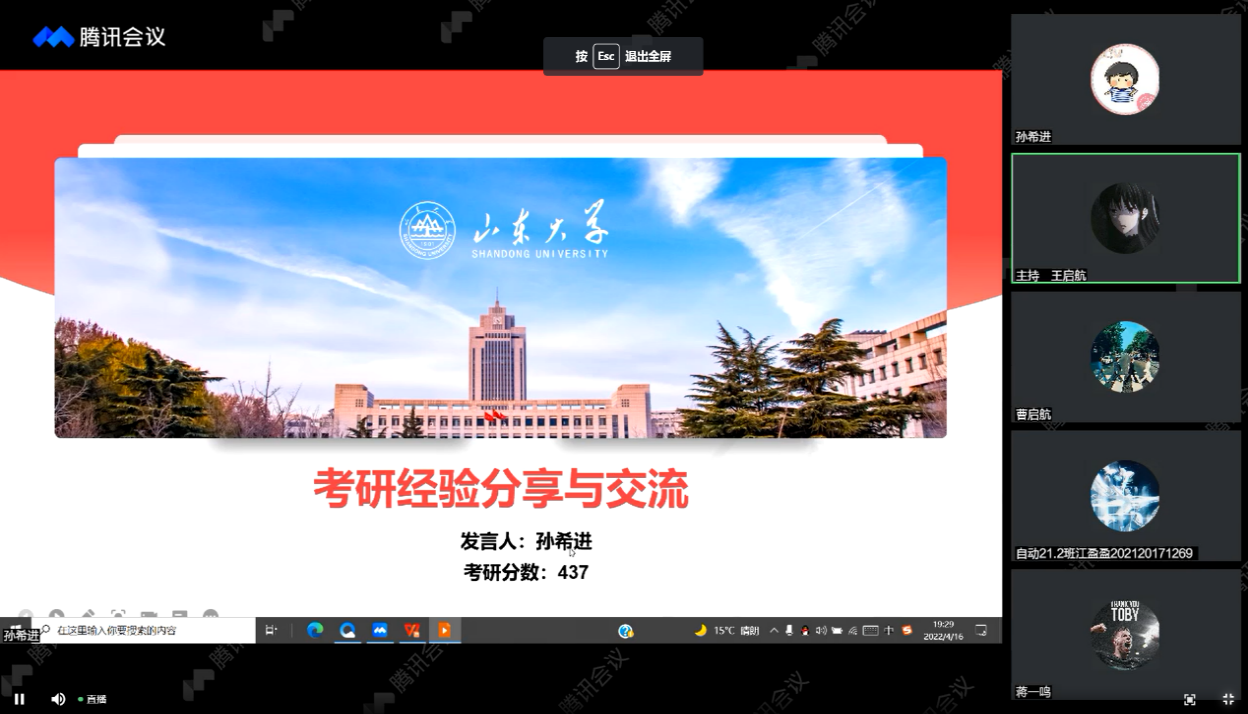 近日,beat365举办“青年说—师兄师姐谈考研”线上讲座,七位考研优秀学生代表依次讲述自身考研故事、分享考研经验、交流考研心得,200余位同学线上参加活动。