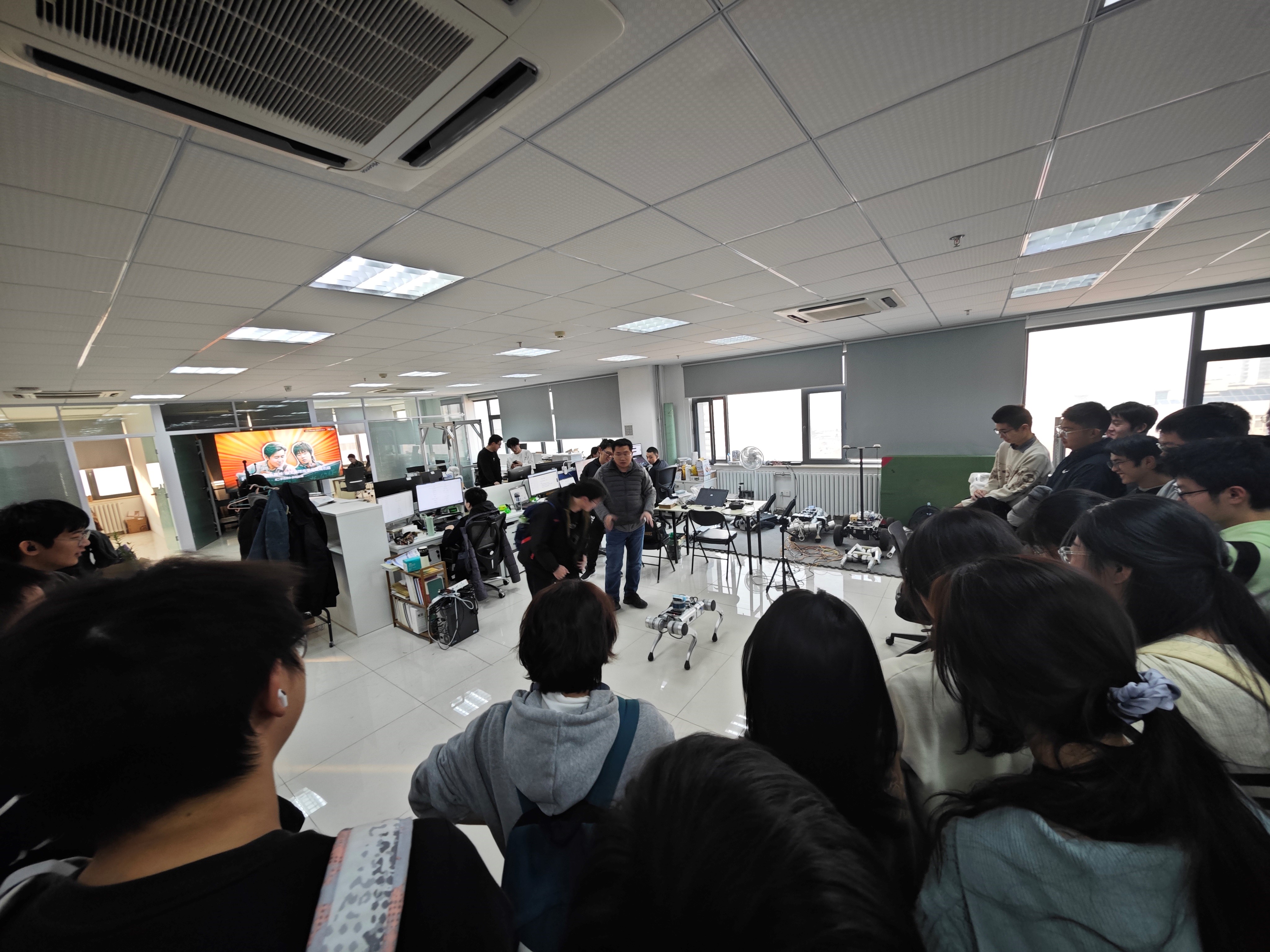 在新能源与高效节能系统优化控制国家地方联合工程研究中心,中心杜春水老师细致地介绍了实验室的发展历程以及专注领域和研究方向,并展示了beat365英国官方网站自主研发设计的光伏逆变器和电能质量控制装备等创新成果。卓越新生们了解到如何将现实中复杂的发电供电环境在实验室中通过技术手段开展模拟研究,加深了对新能源大规模并网的控制理论和技术体系的认识。在智能无人系统教育部工程研究中心,卓越新生们了解到受社会广泛关注的双足机器人和四足机器人。在现场,中心柴汇老师邀请同学们与四足机器人进行物理交互,例如从侧面推动机器人等,让学生们得到了更加直接的亲身体验。此外,学生们还了解到中心多种医疗机器人和超声波机器人。在机器智能与系统控制教育部重点实验室,张伟老师团队讲解了机械臂的拆垛码垛、无人分拣、无人车系统对果园的监测等,以及基于仿真技术进行人工智能模型训练的方法。在智能传感器与检测技术实验室,学生们了解到学院光纤光栅传感的应用研究发展历程,目前基本上摆脱了对进口光纤光栅的依赖,实现了航天器传感器的国产化。在现场,张法业老师还为卓越新生介绍了光纤传感器的工作原理,并展示了一些实验样品。在服务机器人实验室,刘国良老师介绍了各种服务机器人,包括可以实现人员不足时给病人查房以及提供一些基础服务的医护机器人,可以实现完全自主的巡航的“小黑”无人巡检车,具有于水文观测、水质检测、地貌测绘、堤岸风险监测、暗管排污检查等功能的巡检与测绘无人船,用于大型航空器外观检测的无人机等。