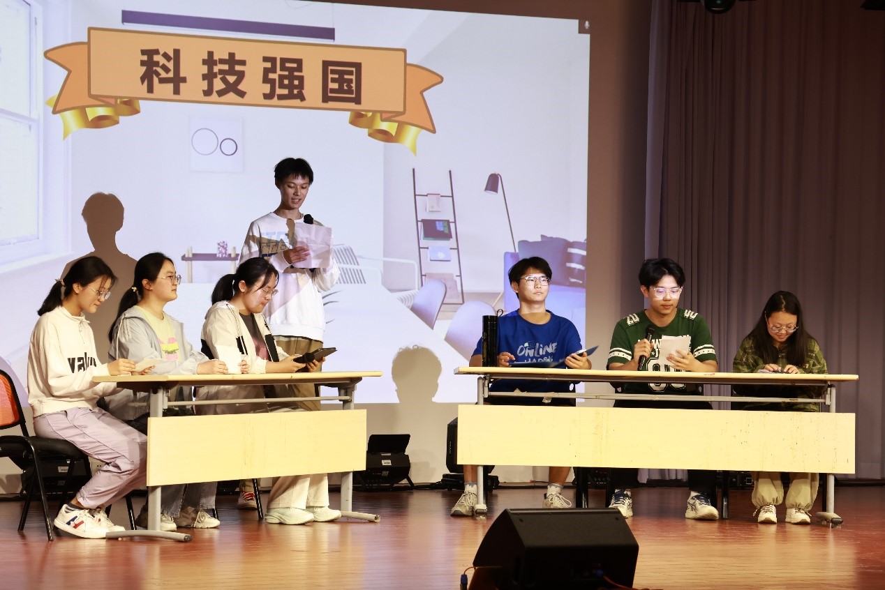 艺术团成员吕志轩以一首优美的歌曲拉开了活动序幕,直接将现场气氛推向高潮。随后各团队依次进行了精彩纷呈的表演,同学们生动的演绎和细致入微的情感把控,形象地彰显了团队对于所选主题的独特理解与深刻思考,也让现场观众频频叫好,掌声雷动。此次大赛分为“心理健康”和“科技兴国”两个主题,“心理健康”主题中,各队以精心打磨的原创剧本展现出当代大学生在学业、情感等各种压力下的心理困境与解脱之道,引起了观众的共鸣与深思;“科技兴国”主题中,队伍则通过对科技工作者的细腻刻画真切地表达了对老一辈科学家的致敬,激发同学们对未来科技创新的热情和追求。评审团对各支团队的表演进行了认真的评价和打分,充分肯定并高度赞扬同学们的无限创意和精彩表现。最后,“你画我猜”的游戏环节为本次活动画上完美的句号,同学们在轻松愉快的氛围中相互交流,增进了彼此之间的友谊。