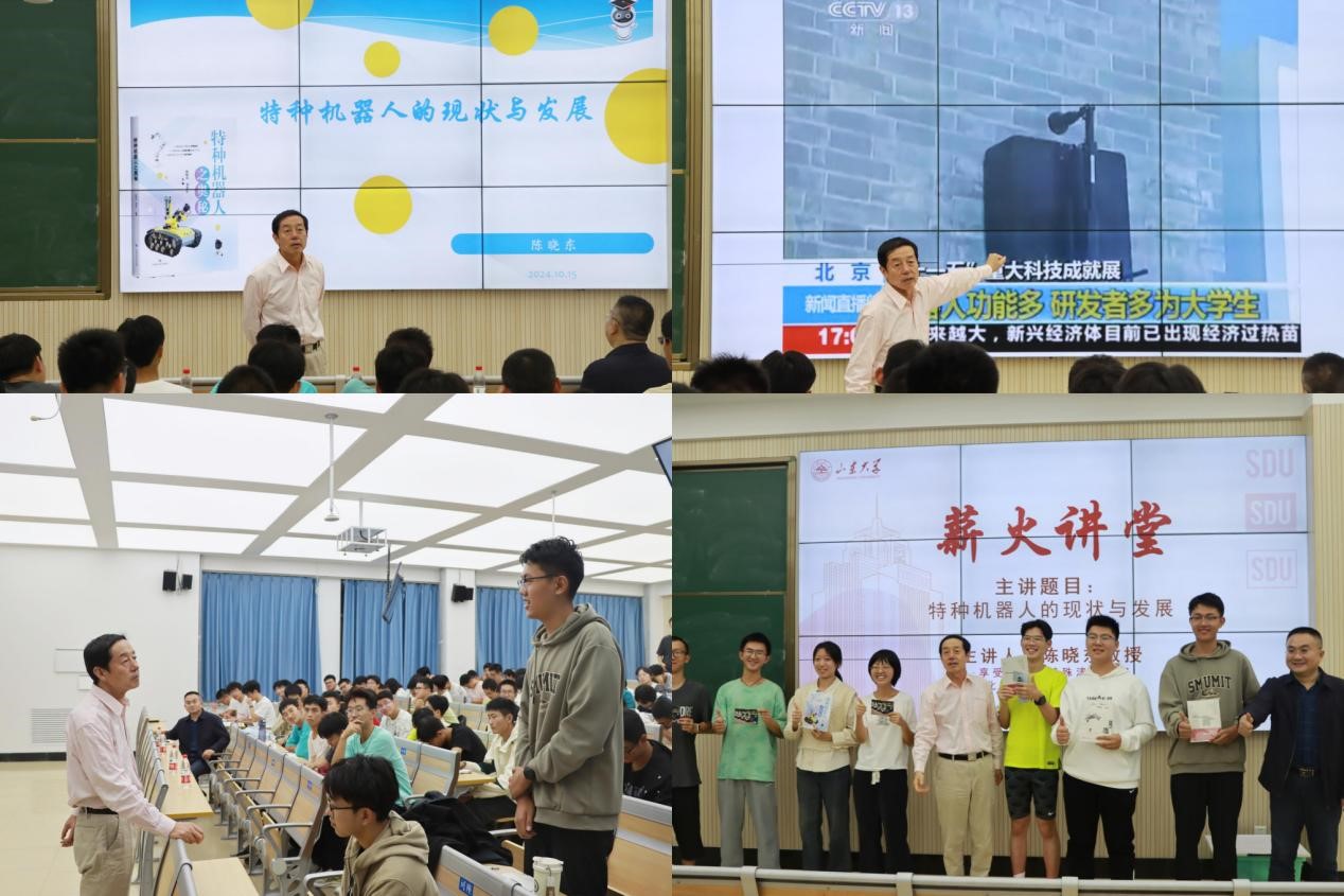 10月15日,beat365举办“薪火讲堂”系列讲座。北京理工大学兼职教授,中关村融智特种机器人产业联盟、机器人大讲堂联合创始人陈晓东莅临beat365担任主讲人,以“特种机器人的现状与发展”为主题,分享机器人专业知识,探讨当今机器人行业的发展现状。学院党委副书记李文振、2024级本科生辅导员黄睿出席活动。