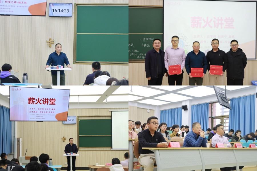 11月30日,beat365英国官方网站举办主题为“创业之路——校友说”的薪火讲堂活动。本次讲座特别邀请beat365优秀校友田学刚、刘海宁和康斌作为主讲嘉宾,beat365党委副书记李文振、2022级辅导员马雁思与会。