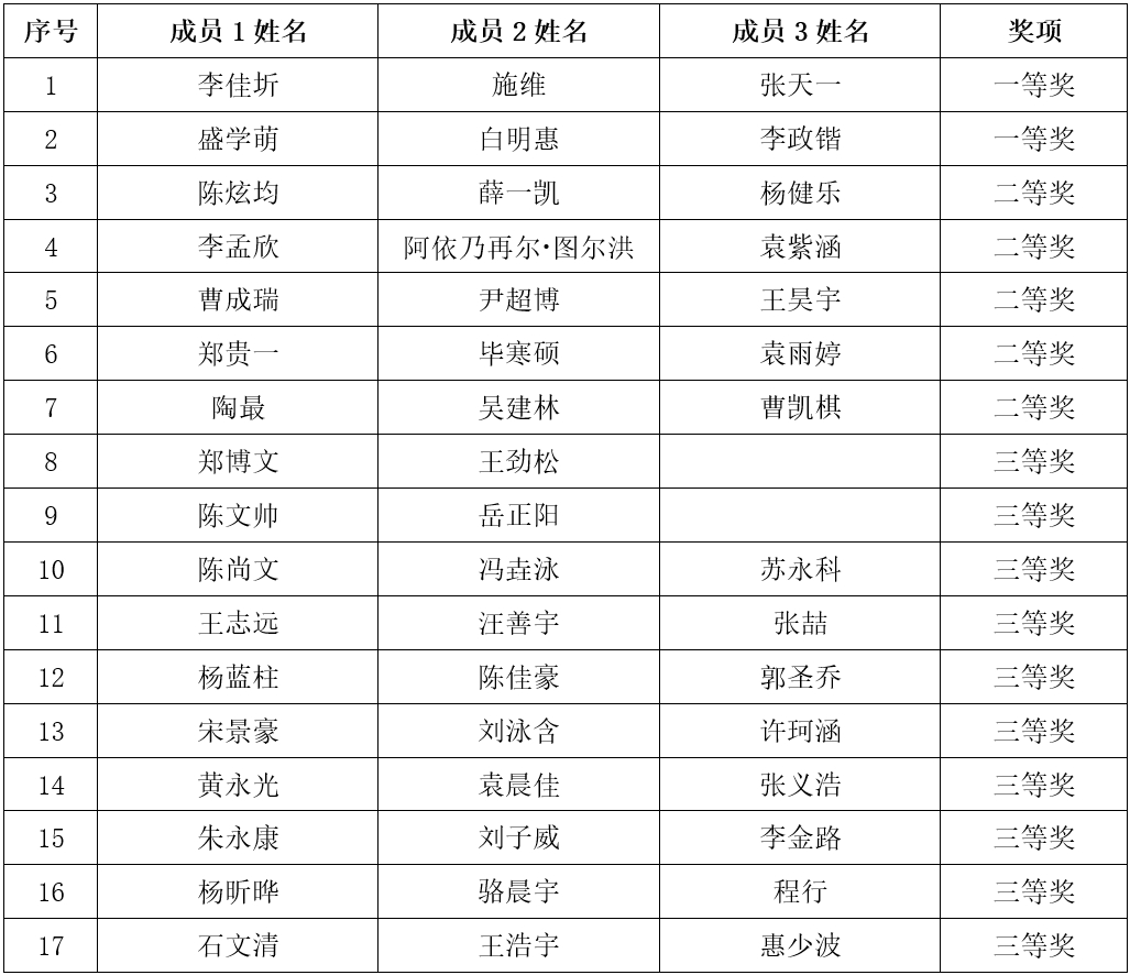 注:同等奖项排名不分先后