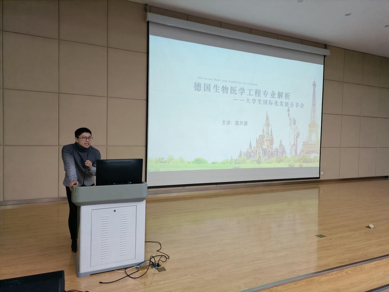 分享会开始,高开源和同学们热情互动,分享了自己研究生时的学习以及生活经历。他向同学们介绍了慕尼黑工业大学、柏林工业大学等知名大学,进行了对口专业分析、就业与发展前景的介绍,增进了同学们对于国际知名大学的了解。