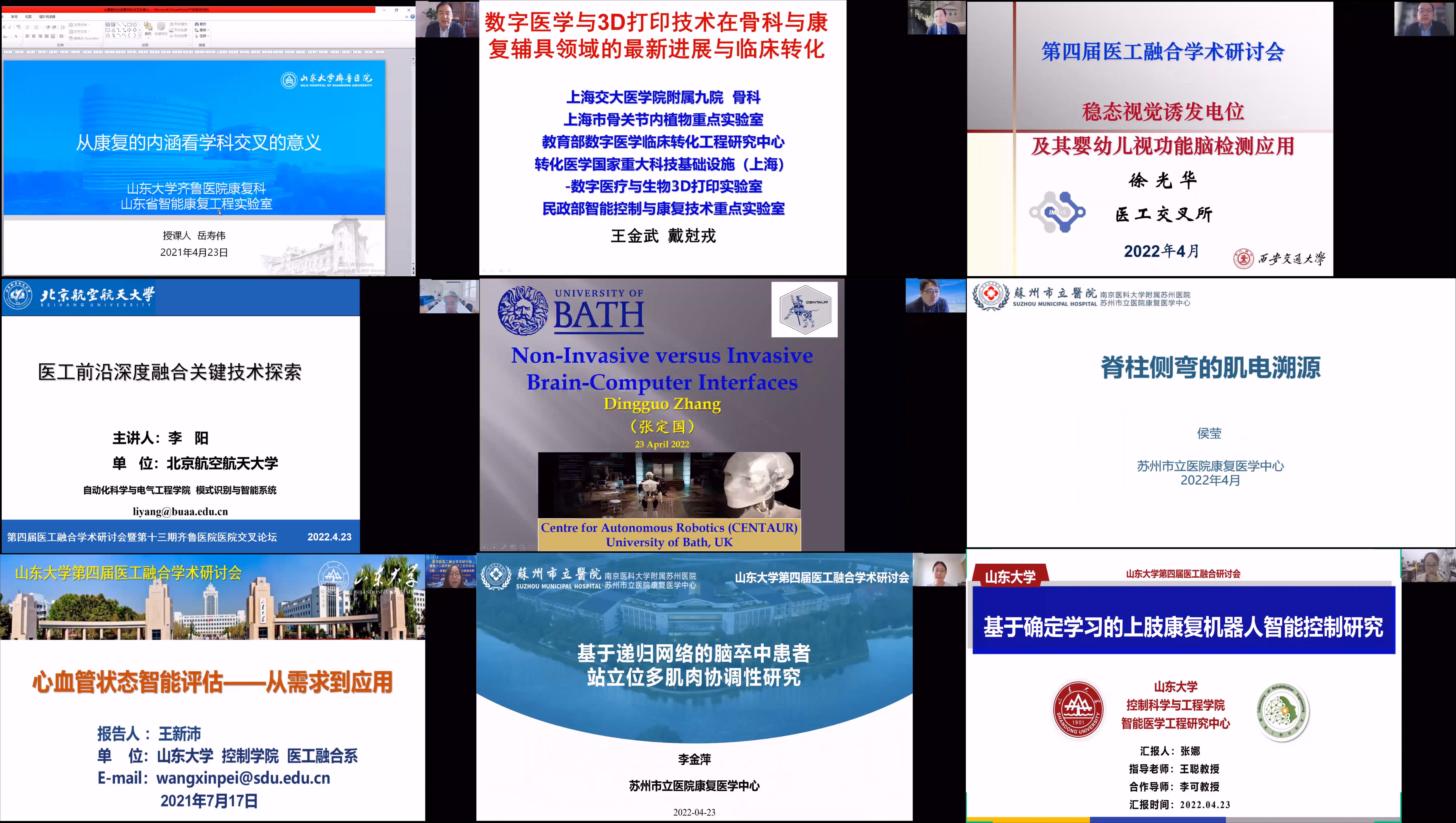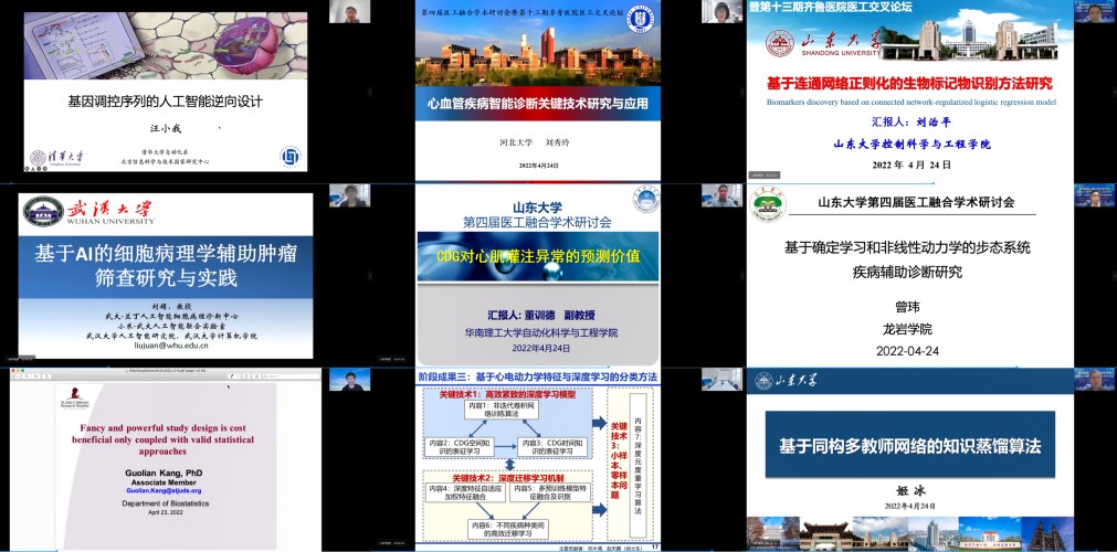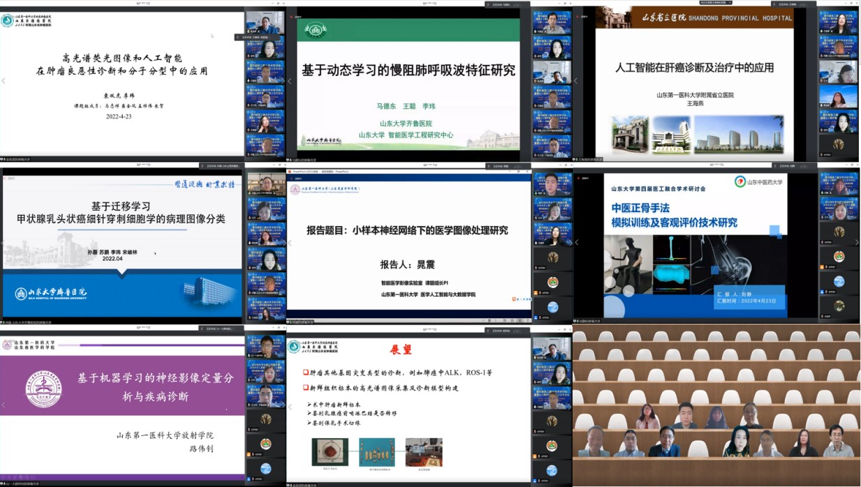 2022年4月23-24日,由beat365英国官方网站、beat365英国官方网站齐鲁医院主办,beat365英国官方网站智能医学工程研究中心承办的第四届医工融合学术研讨会暨第十三期齐鲁医院医工交叉论坛成功举行。本次论讨邀请了来自北京航空航天大学、电子科技大学、国防科技大学、清华大学、浙江大学、上海交通大学、武汉大学、华中科技大学、中科院深圳先进技术研究院、中科院系统所、中国医科大学、美国圣裘德儿童研究医院、英国巴斯大学等数三十余所国内外顶尖学术单位的近50位医学和信息领域知名专家学者和青年学者做学术报告,共同探讨和推进医工交叉融合发展。beat365英国官方网站beat365院长张承慧、常务副院长常发亮,beat365英国官方网站齐鲁医院院长陈玉国、副院长徐峰出席会议并致辞。beat365英国官方网站科学技术研究院副院长宋锐,beat365英国官方网站beat365党委书记高瑞、副院长王光臣、朱文兴、院长助理张伟,beat365英国官方网站齐鲁医院副院长程玉峰、教育处处长兼学科建设办主任吕明、科研处处长杨晓云,beat365英国官方网站智能医学工程研究中心主任王聪出席会议。来自全国各高校、医院和科研院所近7000余人通过线上方式参加本次会议。