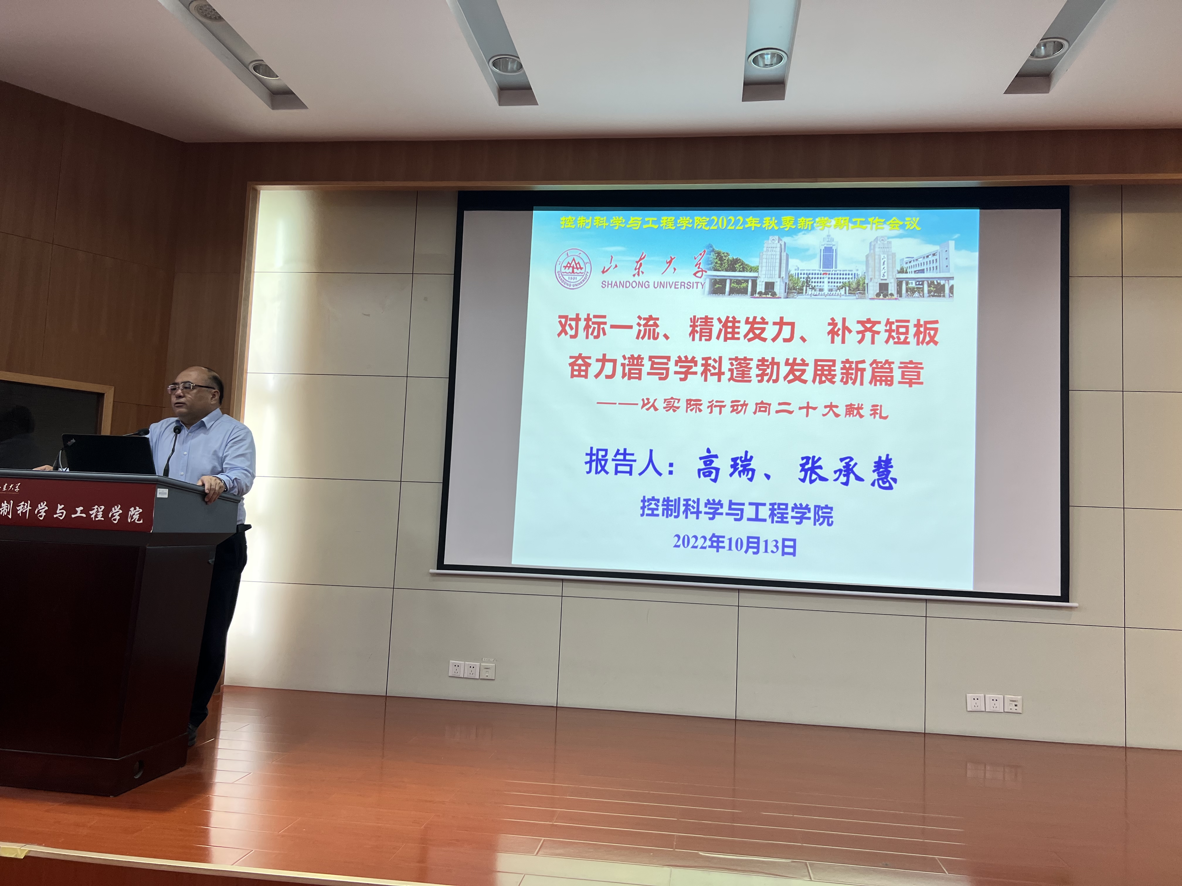 院长张承慧以“对标一流、精准发力、补齐短板,奋力谱写学科蓬勃发展新篇章”为题做了工作报告,分春季学期工作总结、建设任务与完成进度、奋斗目标与未来愿景等三个部分对学院事业发展进行了系统总结和规划布局,强调部署秋季学期重点工作。