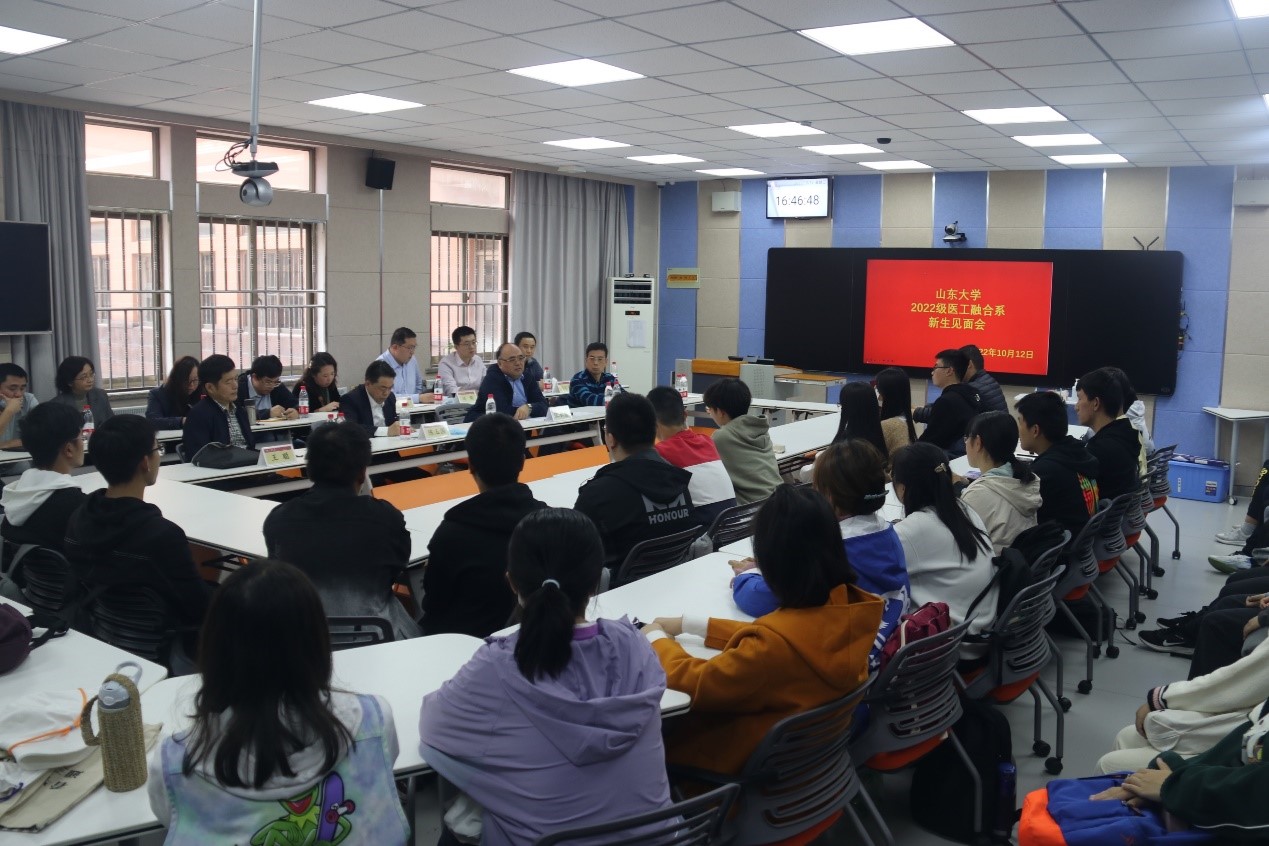 10月12日下午,beat365英国官方网站医工融合系2022级本科新生见面会在兴隆山校区隆重举行。beat365英国官方网站齐鲁医院院长陈玉国、beat365英国官方网站院长张承慧、副院长朱文兴、医工融合系主任王聪出席见面会。beat365英国官方网站医工融合系骨干教师、齐鲁医院医生代表以及2022级医工融合系全体本科新生参加见面会。医工融合系党支部书记李可主持会议。