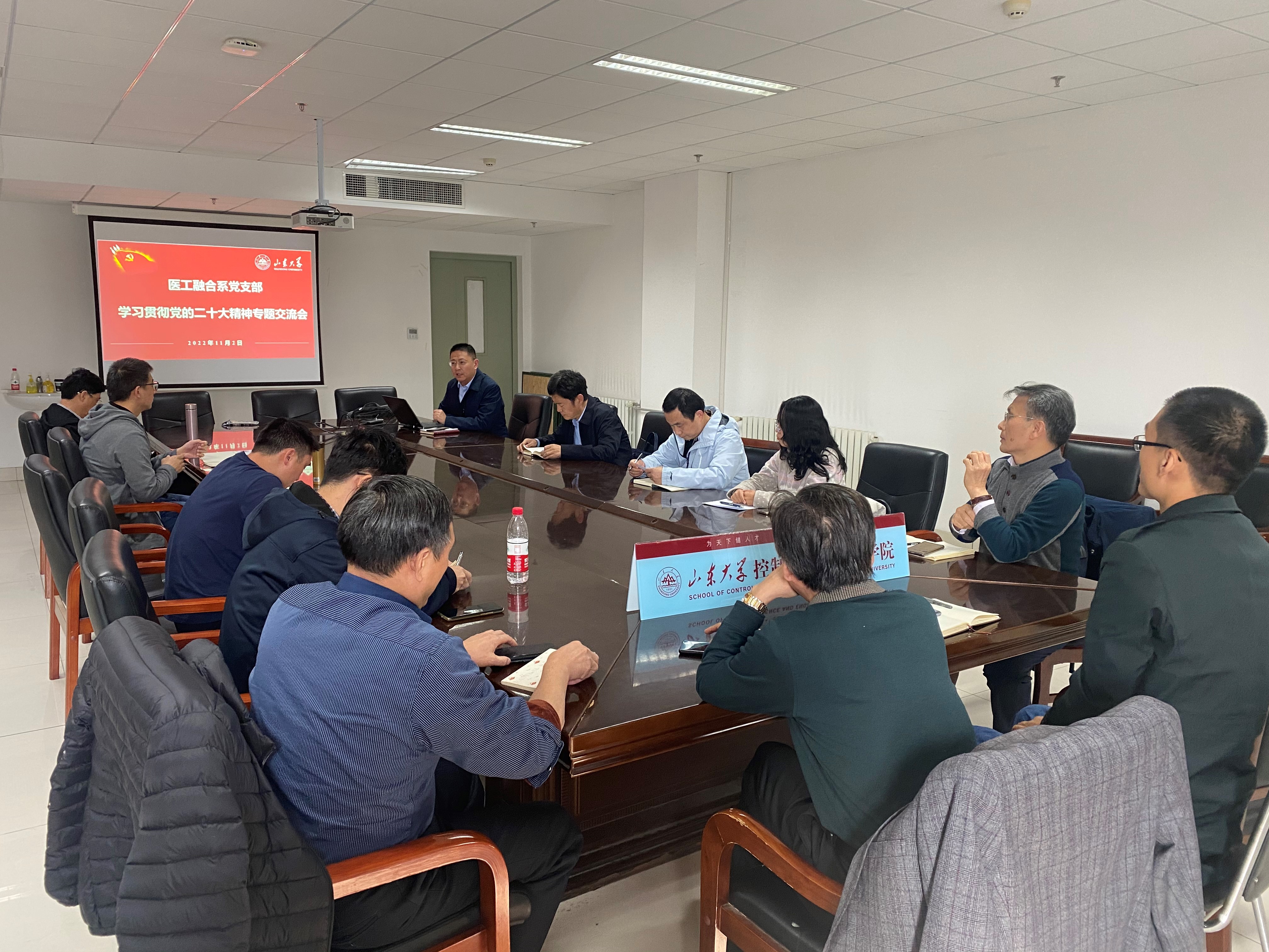 王聪做了“科教兴国战略,强化现代化建设人才支撑”的报告。他结合医工融合系的发展历程、建设成效和发展规划,号召全系要将党的二十大精神转化为创新发展的不竭动力,全面推动医工融合发展和“十四五”规划建设任务。随后,参会人员结合自身思想认识和工作实际交流了学习体会。随后,刘常春、魏守水、杨立才、刘治平等教师相继发言,表示要将党的二十大精神融入到学科建设、人才培养、科研创新、服务社会等工作中。