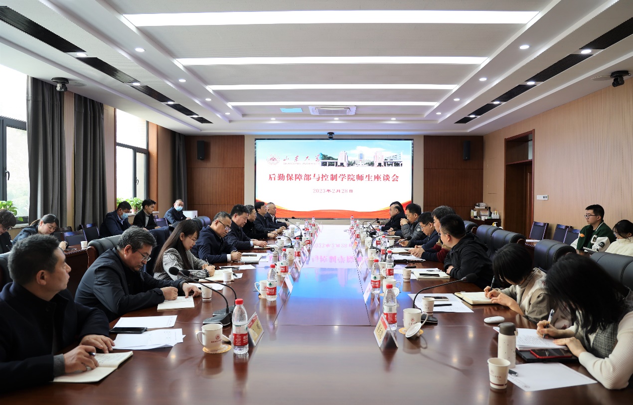 2月28日,beat365英国官方网站校长助理,后勤保障部党委书记、部长朱德建一行到beat365调研座谈后勤保障工作。后勤保障部有关班子成员及千佛山校区管理办公室有关负责人、beat365管服团队及师生代表等参加座谈交流。学院党委副书记李文振主持座谈会。