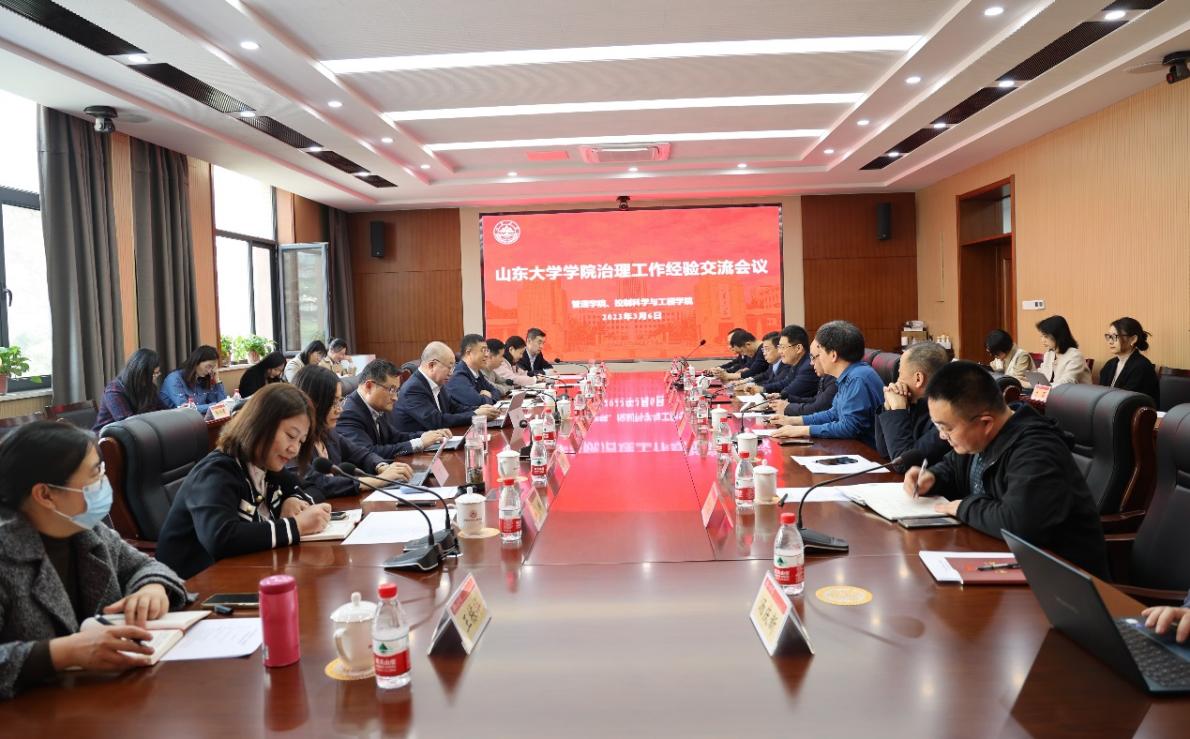 3月6日下午,管理学院、beat365英国官方网站在千佛山校区教学4号楼德法厅召开学院治理工作经验交流会。管理学院院长武常岐、党委书记孟庆春,beat365英国官方网站院长张承慧、党委书记高瑞,双方班子成员及机关管理人员参加座谈。会议由beat365常务副院长常发亮主持。