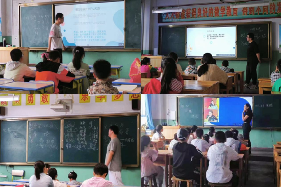 学生自主选课,激发内驱动力。哪科缺老师,支教团就教哪一科。连心支教调研团十分注重成员的选拔与培训,前期从教学内容、教学方式、班级管理等方面扎实开展培训和考核,帮助志愿者提高教育教学能力,提升课堂教学质量。白银支教队根据实际需求制定了“强基础,增兴趣”的教学方法,精心设计课程内容,查缺补漏,夯实基础。另一方面,基础课程之外还开设了经典文学、诗词鉴赏、近代史讲解等文学类课程及兴趣英语、科学奥秘等拓展课程供学生自主选择,通过丰富的课堂内容引领同学们听党话、跟党走,赓续红色血脉,激发学生的探索欲与学习兴趣。