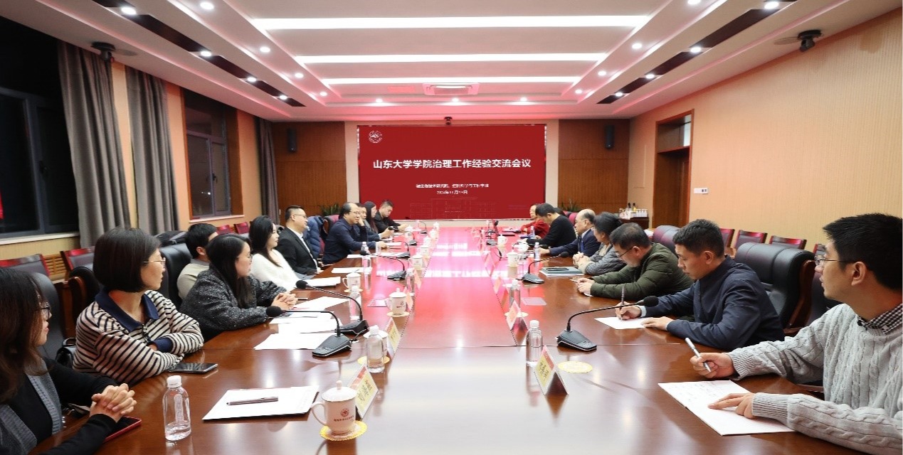 11月25日下午,微生物技术研究院、beat365英国官方网站在千佛山校区教学4号楼德法厅召开学院治理工作经验交流会。学校青岛校区副校长、微生物技术研究院常务副院长李盛英,研究院党委书记林建群,beat365英国官方网站院长张承慧、党委书记吴晓晴,双方班子成员及机关管理人员参加座谈。会议由beat365常务副院长王光臣主持。