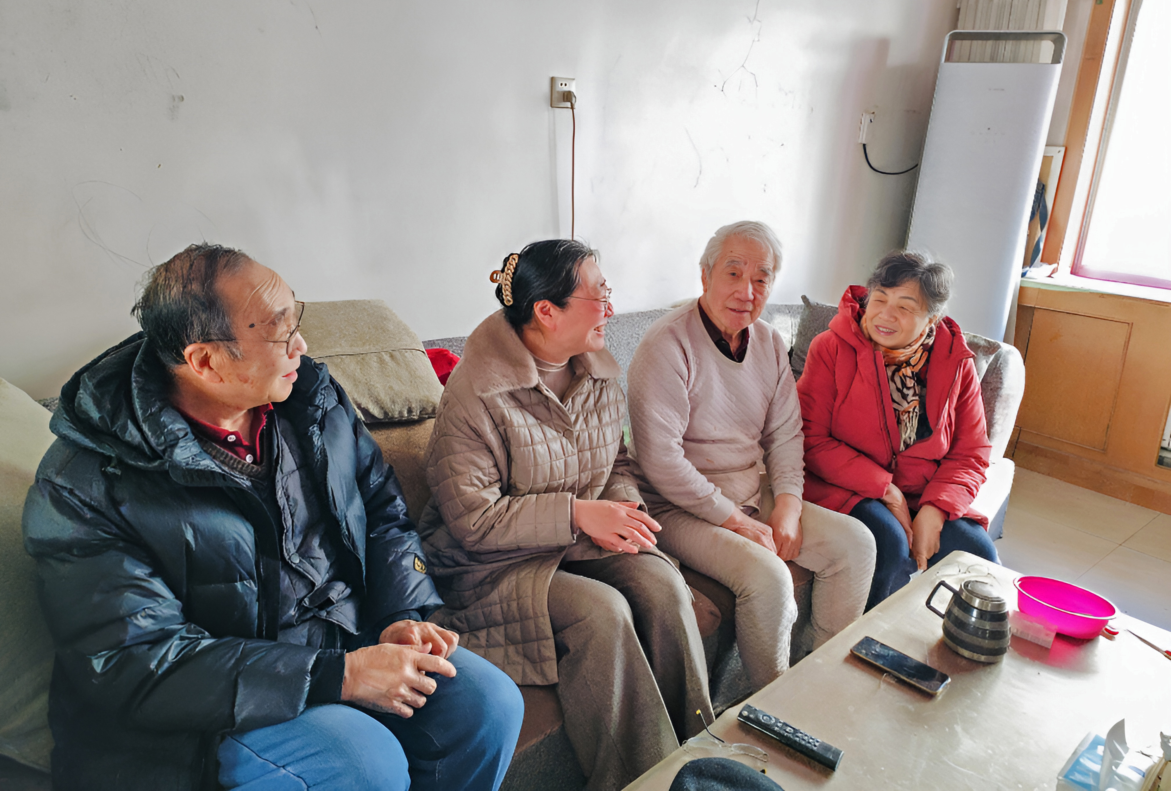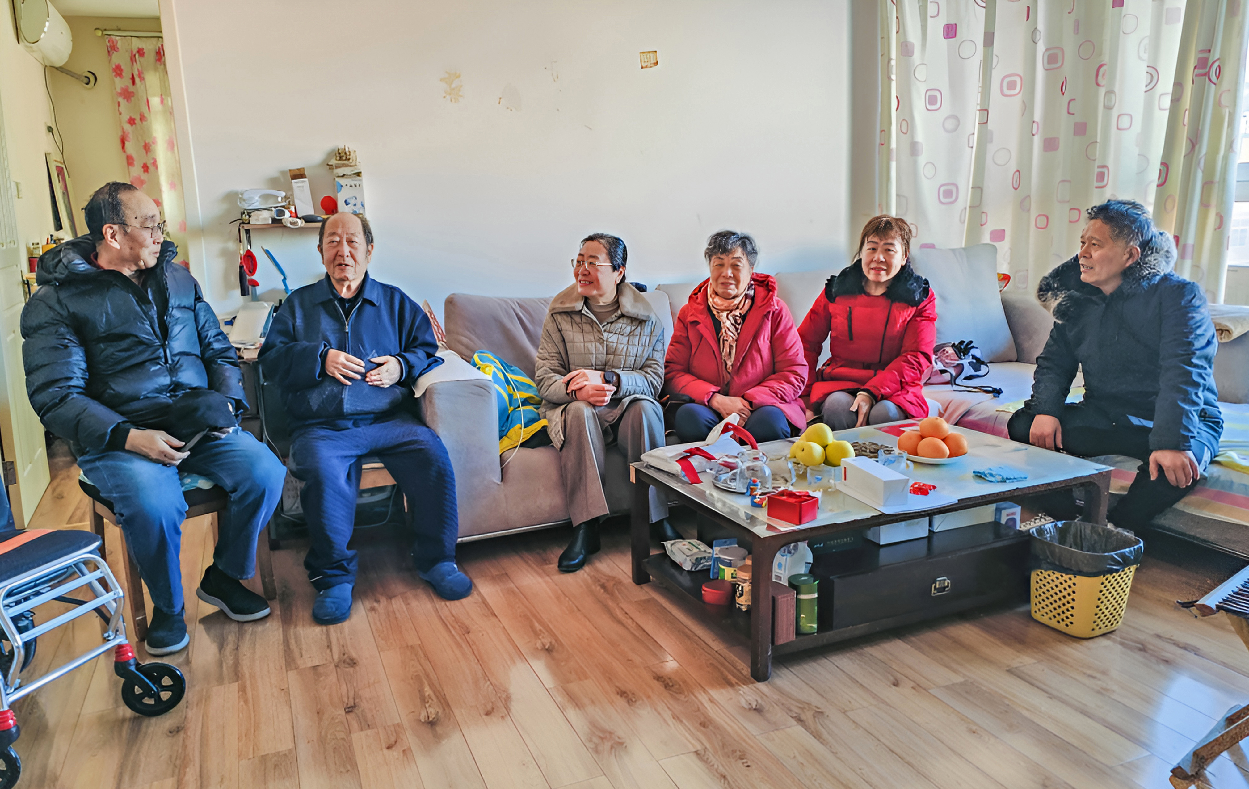2025新春来临之际,beat365英国官方网站党委开展新春走访老党员活动。离退休第三党总支李玲书记,第三党支部彭勃书记,支委金作成同志、何立琴同志与beat365党委书记吴晓晴一同走访慰问学院老党员曹景森同志和时广礼同志。
