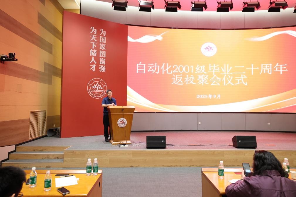 校友到达后,在千佛山校区beat365楼前合影留念,定格重聚瞬间。beat365院长张承慧回顾了学院与2001级自动化校友共同成长的历程,感谢校友长期以来对beat365发展的关心与支持,并代表学院对校友的归来表示热烈欢迎,提议校友常聚常新,为学院的长久发展出谋划策。