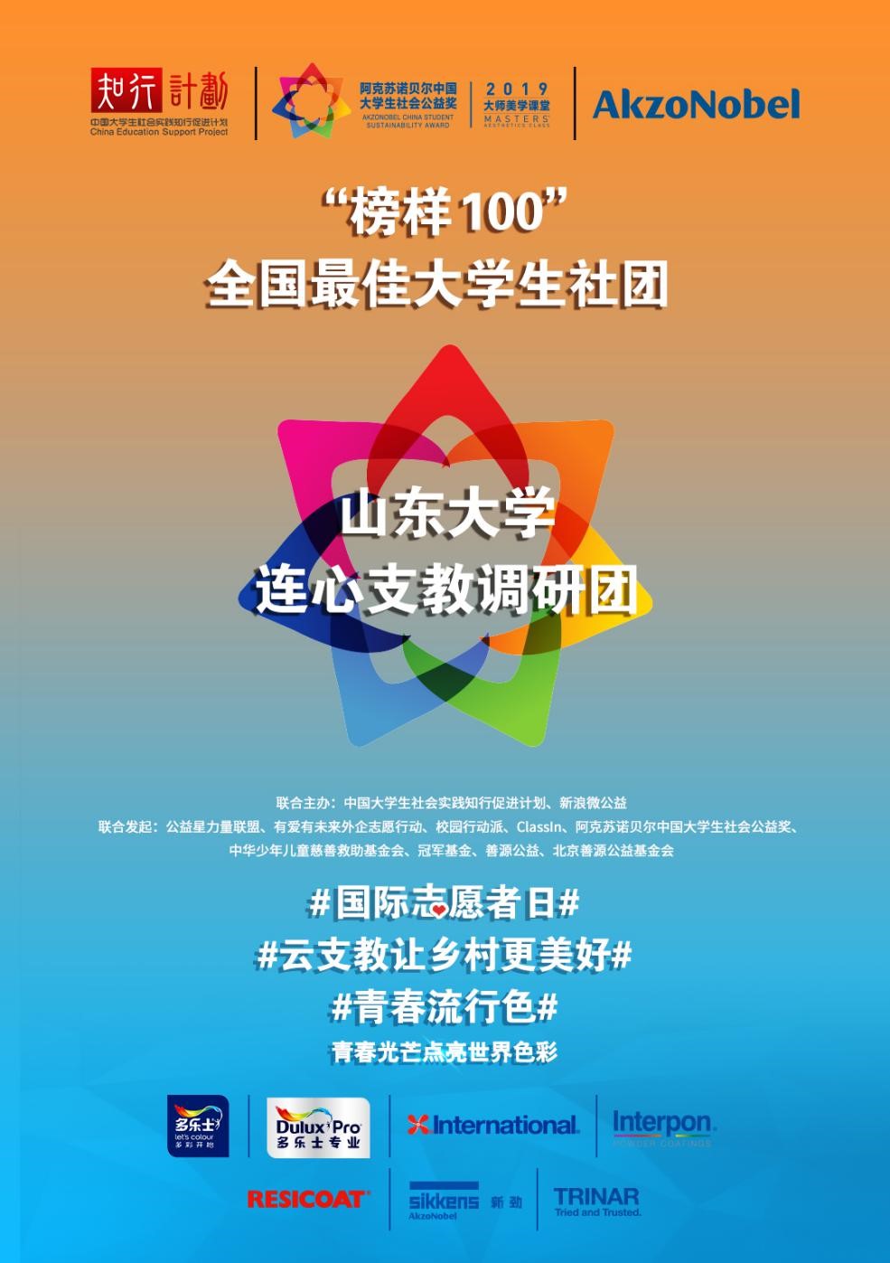 2019年12月5日,“中国大学生社会实践知行促进计划”(简称“知行计划”)公布2019年“榜样100”全国最佳大学生社团获奖名单,beat365英国官方网站连心支教调研团获评全国最佳大学生社团。