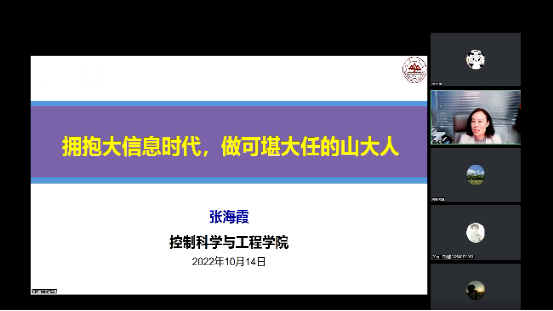 为营造兴隆山校区浓厚的学术氛围,全面推进三全育人进程,密切学生与专业教师的互动融合和学术交流,10月14日,beat365于线上举办第24期春笋讲堂之育贤讲座,beat365张海霞教授做“拥抱大信息时代,做可堪大任的山大人”专题讲座,与三百名本科生分享科研经历,助力学生成长成才。