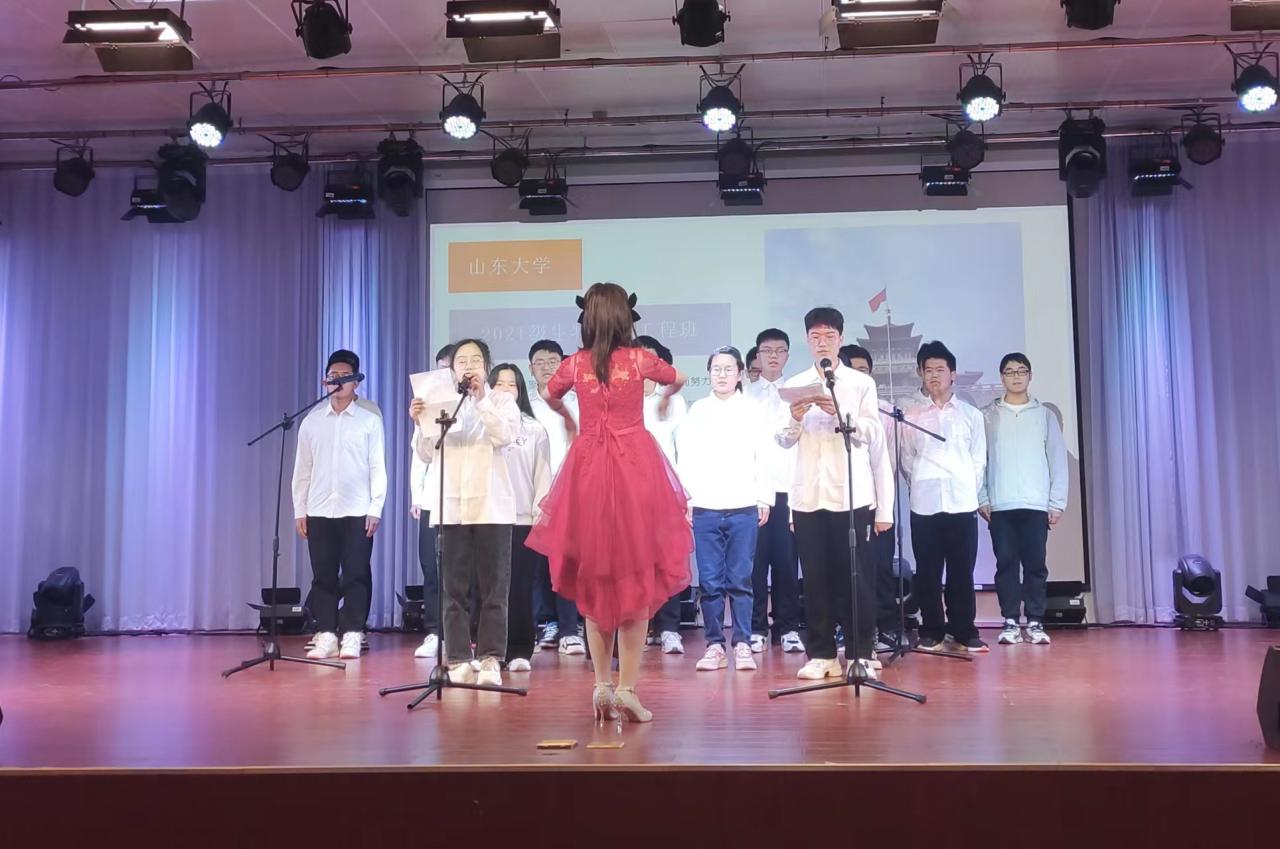 合唱比赛中,各个班级带来了形式多样、内容丰富的合唱表演。青年之声、歌唱祖国。2022级自动化二班深情演唱《灯火里的中国》,用婉转动人的歌喉唱出了祖国的富饶和繁华;2020级人工智能班以一首《我爱你中国》,歌声洪亮、笑容洋溢,彰显对祖国大好河山、繁荣发展的自豪之情。感恩母校、歌颂山大。2020级自动化一班献唱《beat365英国官方网站校歌》,用高亢激昂的嗓音唱出山大学子积极进取、乐观向上的精神风貌;2021级生物医学工程班在《我的山大我的家》的轻快节奏中感受校园温暖。唱响青春、绽放荣光。2021级机器人二班合唱《凤凰花开的路口》,字里行间见证了他们并肩共度的青春成长;2022级自动化三班用歌喉追寻《夜空中最亮的星》,歌唱青年对生活无限的热情与冲劲。比赛期间,beat365艺术团孙建硕带来弹唱《我记得》,王敏带来歌曲《房间》,用充满活力的中场演出调动全场气氛,精彩的演绎尽显青春风采。